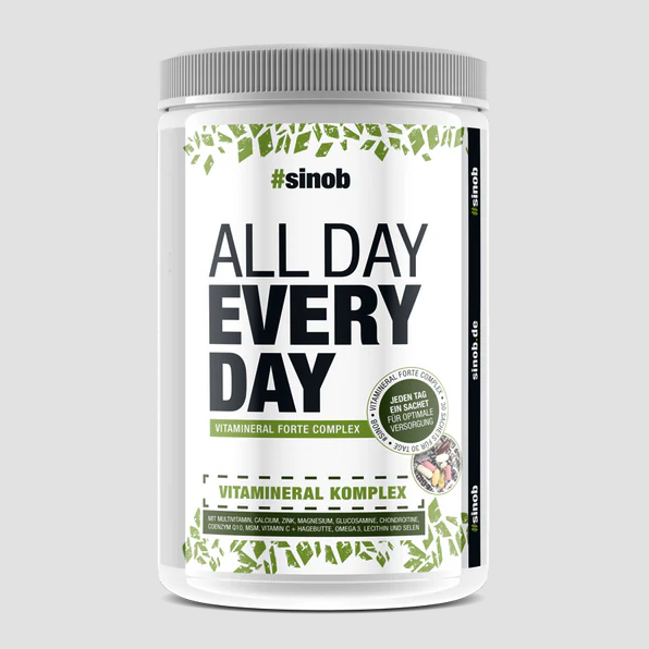 Vitamin, Mineralstoffe, Omega 3, Coenzym Q10, Gelenke & Sehnen, Lecithin… Die Liste ist lang und da man all diese tollen Sachen nicht sinnvoll in eine Tablette/Kapsel bekommt, haben wir uns entschieden “All Day Every Day” auf Basis von 30 kleinen Päckchen zu realisieren. In jedem der 30 Päckchen findet ihr 8 Tabletten/Kapseln/LiquidCaps, die euch jeden Tag mit allem was man so braucht versorgen.