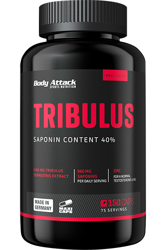 Im Bodybuilding und Kraftsport gehört TRIBULUS TERRESTRIS als Pflanzenextrakt zu den beliebtesten Nahrungsergänzungen. Wir haben speziell nach Wünschen von Eisensportlern ein TRIBULUS TERRESTRIS Produkt mit Maxi Caps entwickelt, damit man mit wenig Kapseln eine größere Menge an TRIBULUS TERRESTRIS aufnehmen kann. Zwei Kapseln BODY ATTACK Tribulus